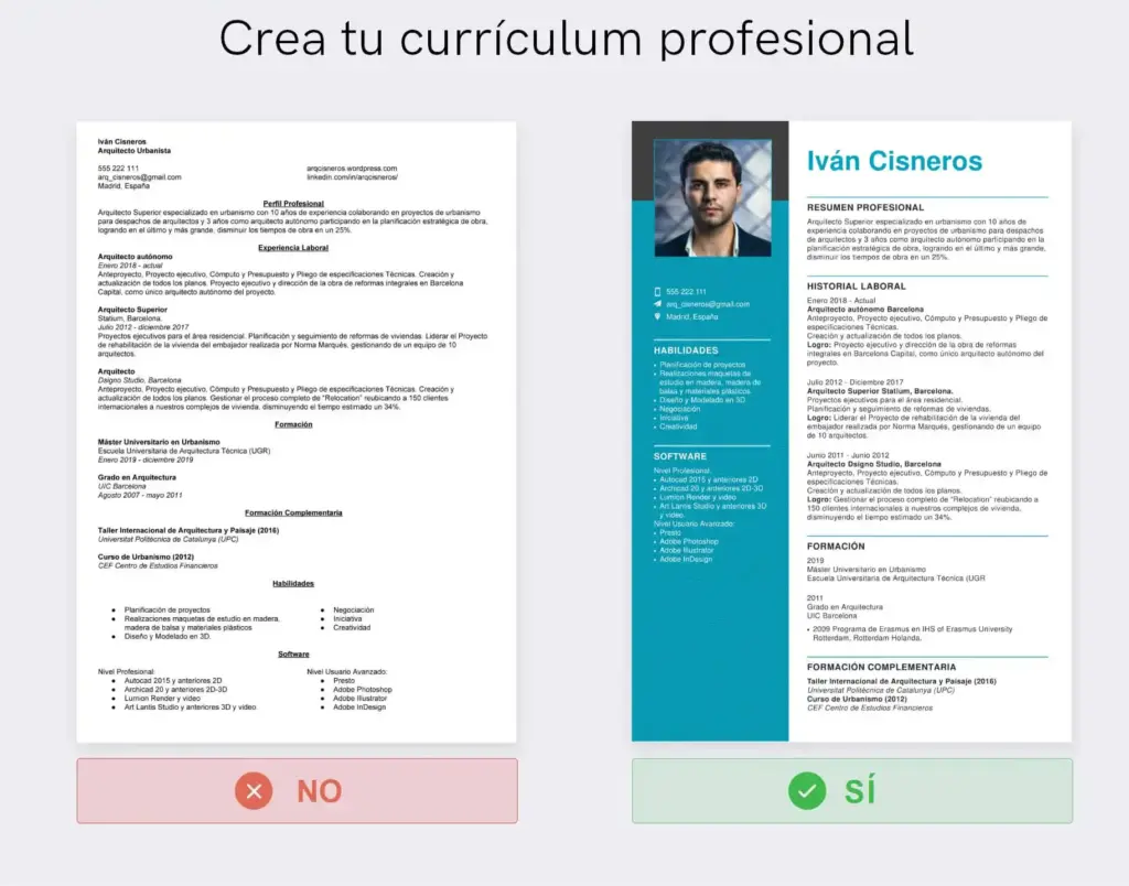 • Fotografía: Opcional, pero si incluyes una, que sea profesional.